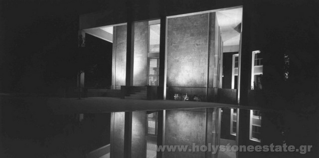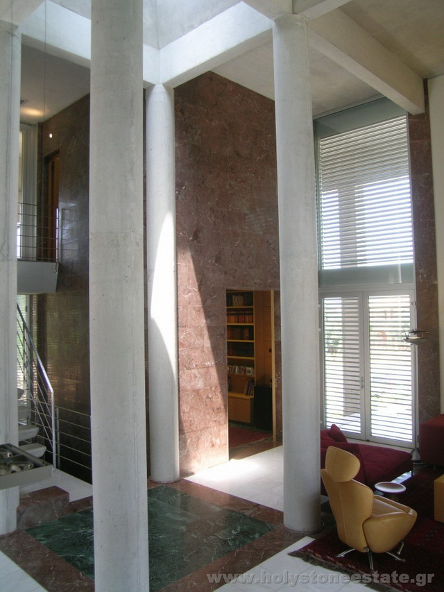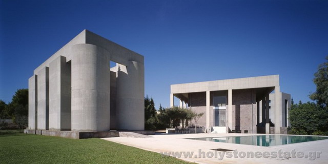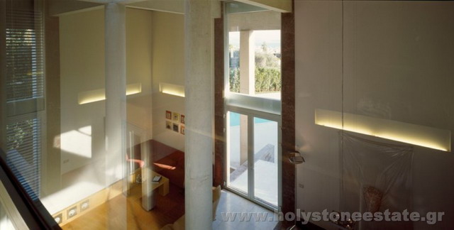 Πρόκειται για μία από τις πλέον μοντέρνες κατοικίες των Νοτίων Προαστίων Αττικής. Ο πρωτότυπος αρχιτεκτονικός σχεδιασμός και το προσεγμένο ταίριασμα των υλικών, προκαλούν ιδιαίτερη αίσθηση από την πρώτη στιγμή που ο επισκέπτης θα εισέλθει στο χώρο του ακινήτου. Με συνολικό εμβαδόν 650τμ περίπου, μέσα σε ένα γαλήνιο minimal περιβάλλον 3.000τμ κήπου με ελιές και ευκαλύπτους, η μοναδική αυτή κατοικία αποτελείται από τρεις διαφορετικούς όγκους προκαθορισμένης χρήσης (κτίσμα α με χώρους υποδοχής και ψυχαγωγίας, κτίσμα β με χώρους ξεκούρασης και ύπνου και κτίσμα γ ξενώνας) οι οποίοι ενώνονται μέσω διαδρόμων με μεγάλες γυάλινες επιφάνειες. Ο χώρος υποδοχής είναι ιδιαίτερα υψηλοτάβανος καταθέτοντας το δικό του στίγμα, ενώ ο χώρος της βιβλιοθήκης προδιαθέτει για ατέλειωτες ώρες διαβάσματος και χαλάρωσης. Με πρωτογενείς και ακατέργαστες επιφάνειες και λιτά στοιχεία από εμφανές μπετόν, μέταλλο, ξύλο και γυαλί, το ακίνητο διαθέτει 4 άνετα υπνοδωμάτια, δωμάτια προσωπικού και φιλοξενουμένων, ένα μεγάλος χώρο γραφείου καθώς και μια μεγάλη πισίνα με θέα στη θάλασσα.