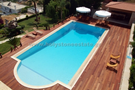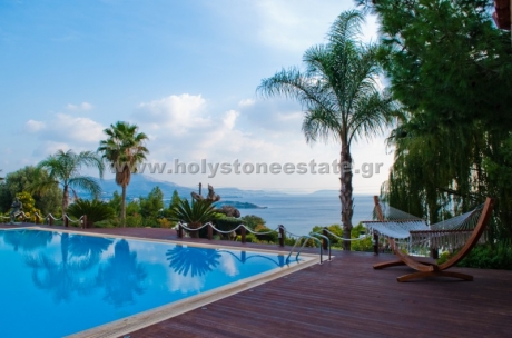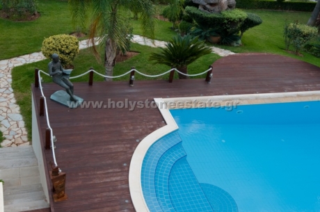 Κτισμένη στις πευκόφυτες πλαγιές της Αγίας Μαρίνας Αττικής και μόλις 250μ από τη θάλασσα, η πολυτελής αυτή βίλα 680τμ περιβάλλεται από καταπράσινο ολάνθιστο κήπο 3.500τμ. Προσφέροντας ανεμπόδιστη ονειρική θέα θάλασσας (ορίζοντας 180 μοιρών), περιλαμβάνει μεγάλους χώρους υποδοχής (2 σαλόνια, 2 τραπεζαρίες) 4 αμερικάνικου τύπου υπνοδωμάτια (master 45τμ με τζάκι, dressing room και γραφείο), ξενώνα, κάβα-wine tasting room, γυμναστήριο, δωμάτιο χαμάμ-jacuzzi, home cinema, μεγάλη θερμαινόμενη εξωτερική πισίνα με deck & αποδυτήρια-w.c., στεγασμένο BBQ-bar, γενήτρια, 15 και πλέον θέσεις στάθμευσης αυτοκινήτων, καθώς και μία εντυπωσιακή συλλογή από δένδρα (επιβλητικούς φοίνικες, αιωνόβιες ελιές, κλαιόμενες ιτιές, κ.α.)