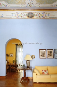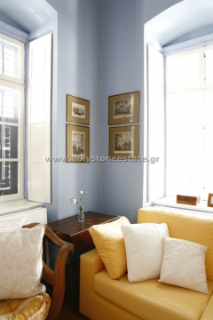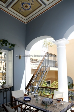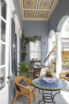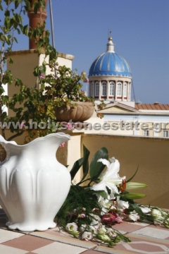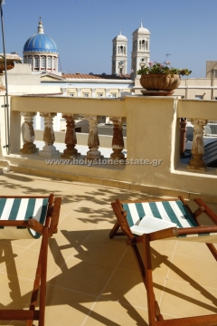 Στο πολιτισμικό σταυροδρόμι των Κυκλάδων, στην Ερμούπολη της Σύρου, μοναδικό νεοκλασικό αρχοντικό του 19ου αιώνα, συνολικού εμβαδού 390τμ, πολύχρωμες οροφογραφίες, πολυτελή και φινετσάτη διακόσμηση και παραδοσιακή επίπλωση με άποψη, άνετη ηλιόλουστη αυλή, έντονα χρώματα τοίχων σε αποχρώσεις των γαλάζιου, λαδί και terracotta, 4 μεγάλα υπνοδωμάτια (master en-suite 75τμ με prive βεράντα με θέα στον Άγιο Νικόλαο) και δυνατότητα εξυπηρέτησης 6-8 ατόμων. Το εν λόγω κατάλυμα είναι 5 αστέρων και προτείνεται ως η απόλυτη ειδυλλιακή εμπειρία του καλοκαιριού. Δυνατότητα υποστήριξης σε ημερήσια βάση από chef & υπηρετικό προσωπικό. Τιμή Ενοικίασης: €1.800/εβδομάδα για τους μήνες Ιούνιο-Ιούλιο-Σεπτέμβριο και €2.500/εβδομάδα για το μήνα Αύγουστο.